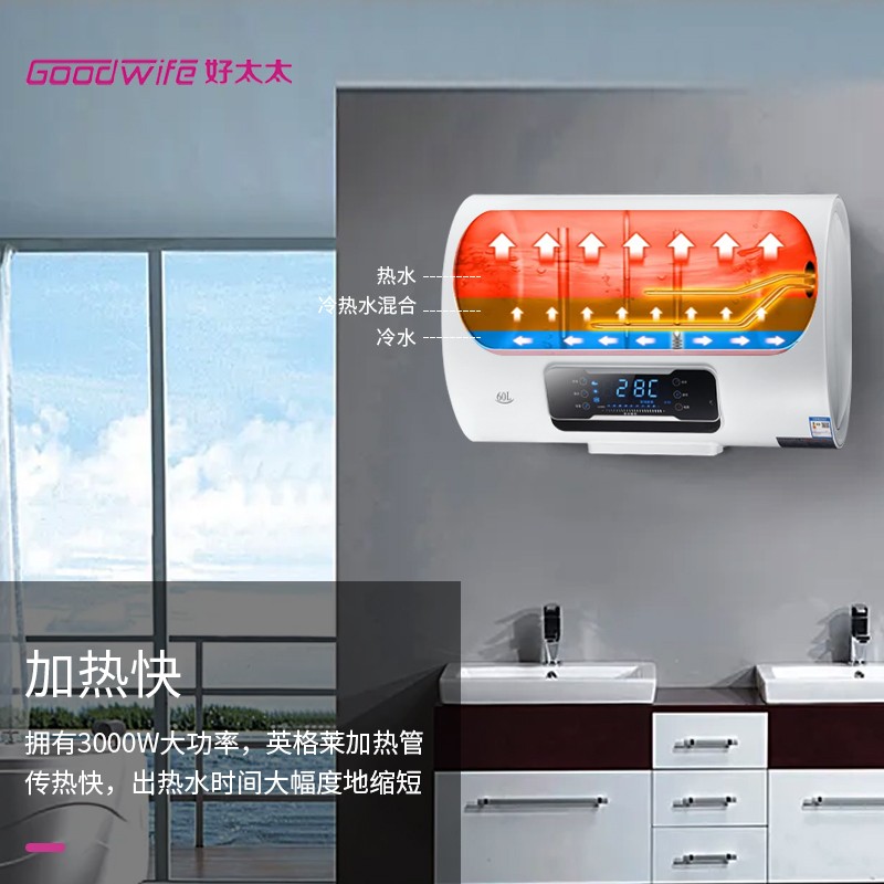 现在市面上的电热水器产品太多了,质量也是参差不齐,我们在选购时一定要擦亮眼睛。 Goodwife好太太,央视展播品牌、百度战略合作品牌,全国联保,在京东商城就有销售,不管是产品质量还是服务各方面都比较方便、省心、放心。